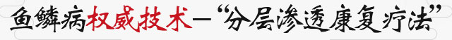 医疗界在治疗鱼鳞病上面,一直没有突破,治疗中不是效果不理想就是毒副作用超过正常标准。皮肤医学界采用“分层渗透康复疗法”,该疗法成功运用“中医药疗”+“热疗”+“汽疗”+“渗透治疗”分层渗透疗法结合。